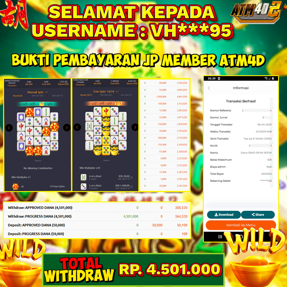ATM4D2 dikenal sebagai situs terpercaya yang selalu menghadirkan pengalaman bermain slot online yang aman, fair, dan berlisensi resmi. Di sini, kami tidak hanya sekadar memberikan janji, tapi bukti nyata berupa slip kemenangan yang dapat Anda lihat secara langsung.