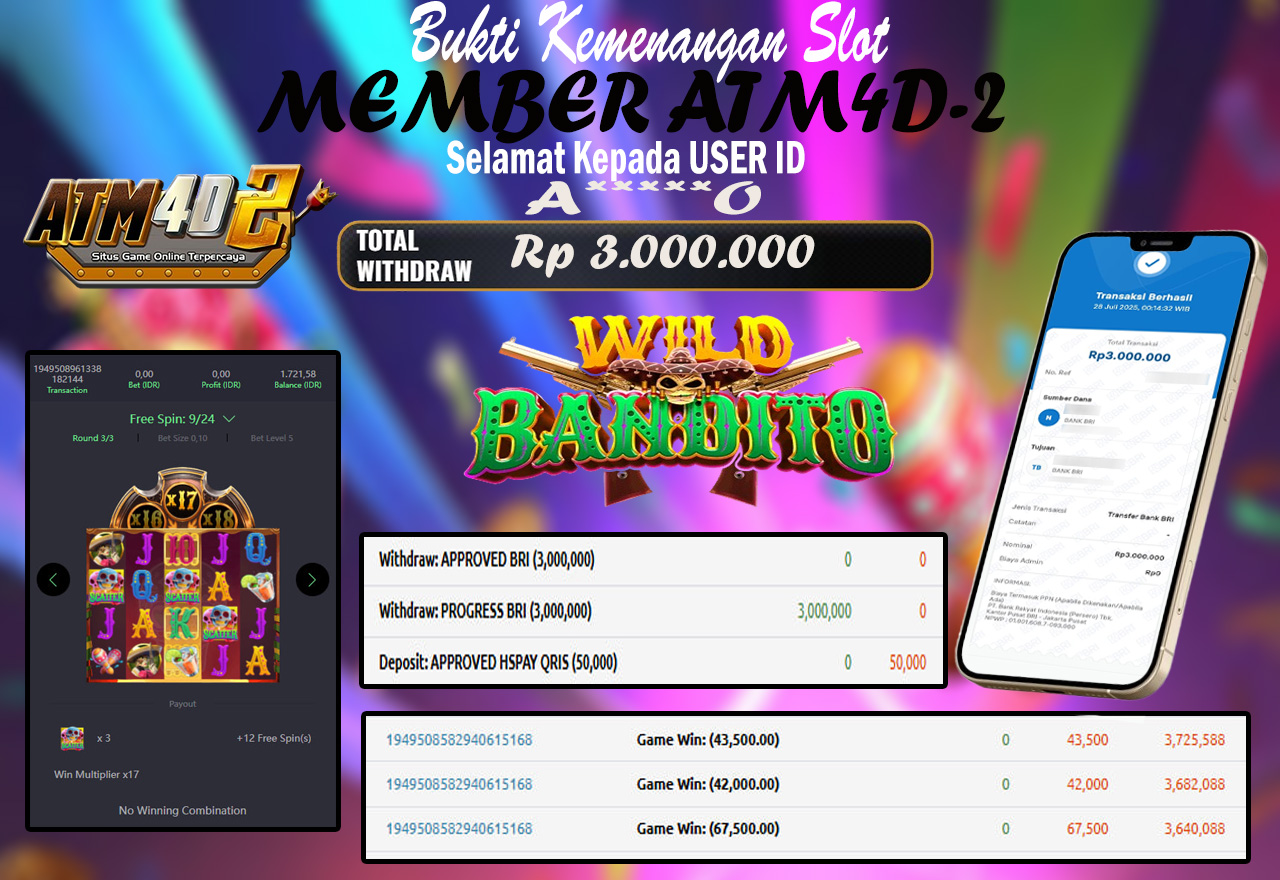 ATM4D2 dikenal sebagai situs terpercaya yang selalu menghadirkan pengalaman bermain slot online yang aman, fair, dan berlisensi resmi. Di sini, kami tidak hanya sekadar memberikan janji, tapi bukti nyata berupa slip kemenangan yang dapat Anda lihat secara langsung.