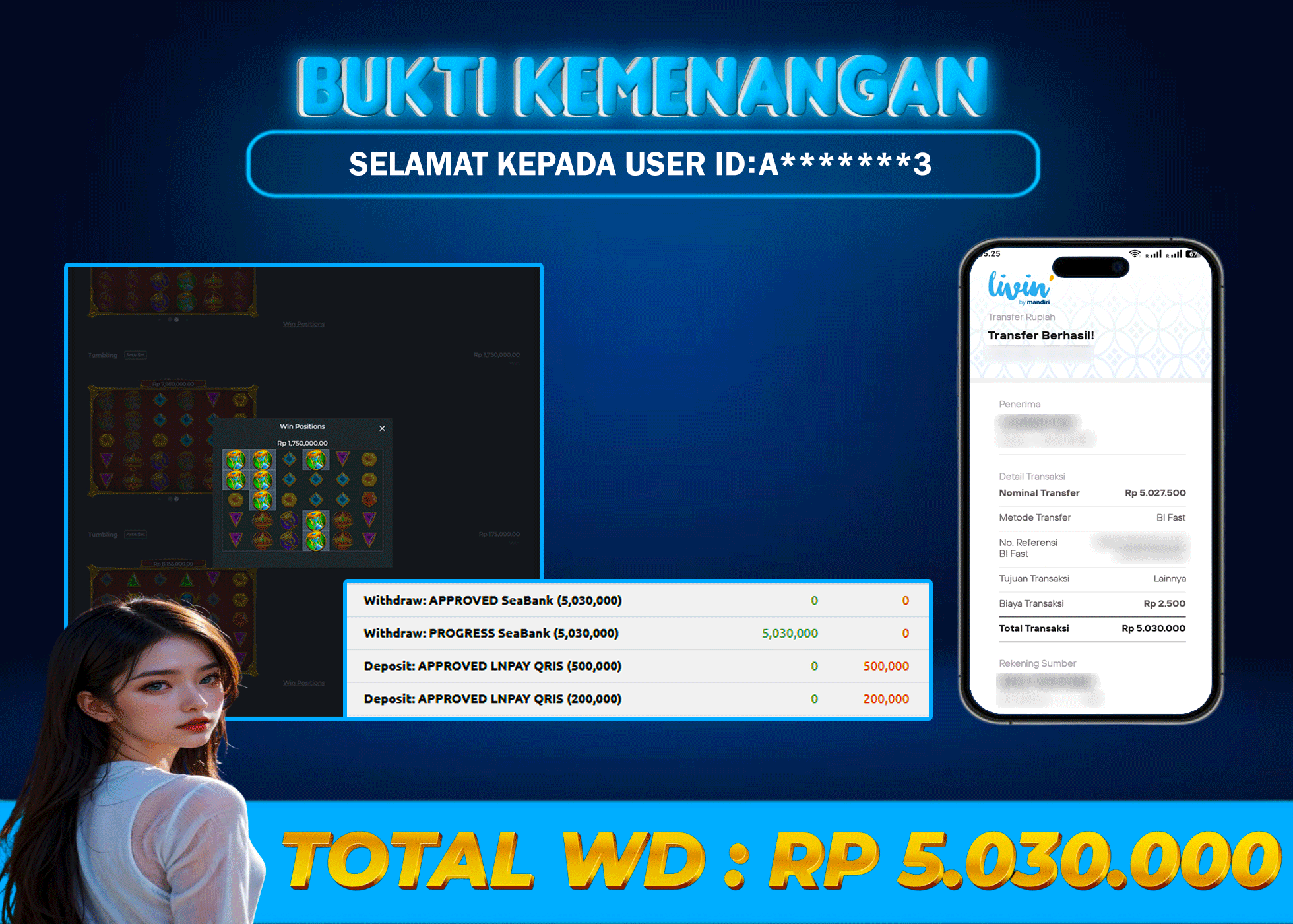 ATM4D2 dikenal sebagai situs terpercaya yang selalu menghadirkan pengalaman bermain slot online yang aman, fair, dan berlisensi resmi. Di sini, kami tidak hanya sekadar memberikan janji, tapi bukti nyata berupa slip kemenangan yang dapat Anda lihat secara langsung.