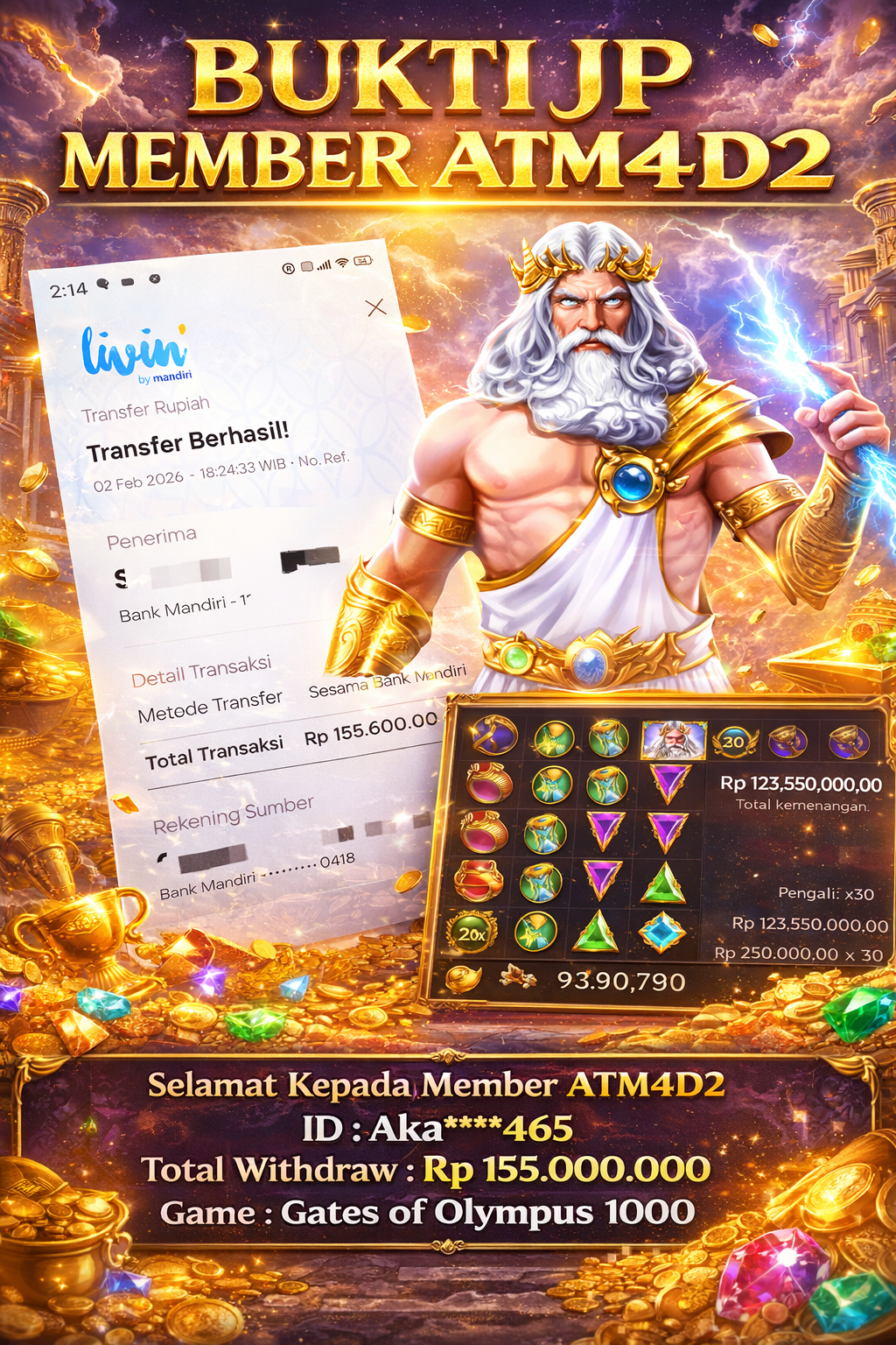 ATM4D2 dikenal sebagai situs terpercaya yang selalu menghadirkan pengalaman bermain slot online yang aman, fair, dan berlisensi resmi. Di sini, kami tidak hanya sekadar memberikan janji, tapi bukti nyata berupa slip kemenangan yang dapat Anda lihat secara langsung.