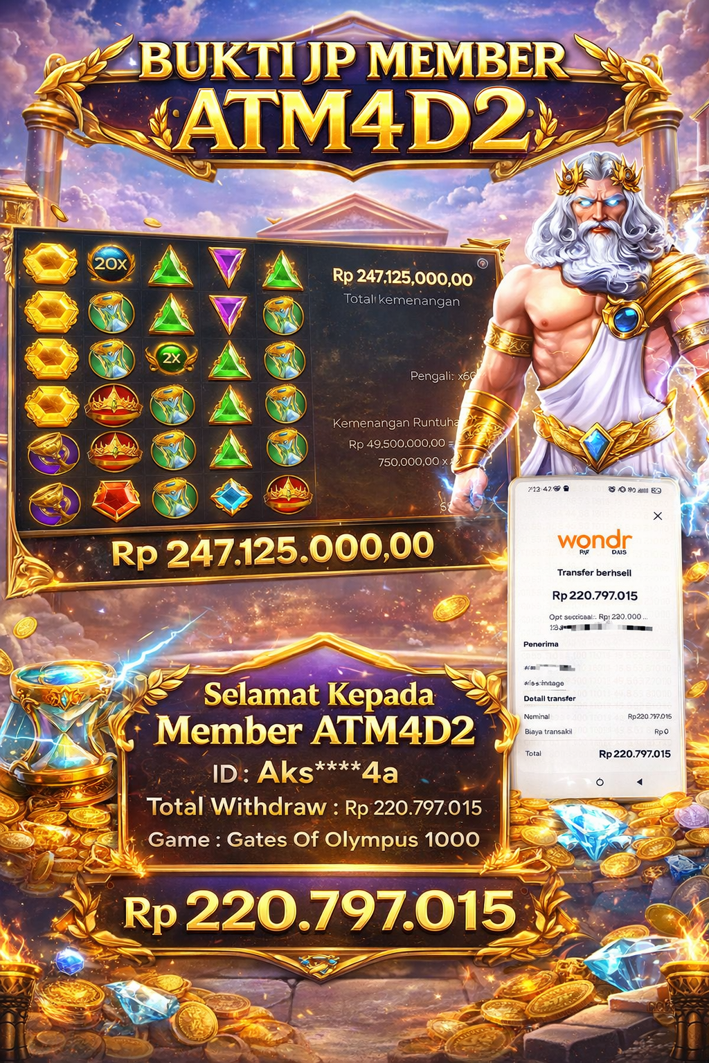 ATM4D2 dikenal sebagai situs terpercaya yang selalu menghadirkan pengalaman bermain slot online yang aman, fair, dan berlisensi resmi. Di sini, kami tidak hanya sekadar memberikan janji, tapi bukti nyata berupa slip kemenangan yang dapat Anda lihat secara langsung.