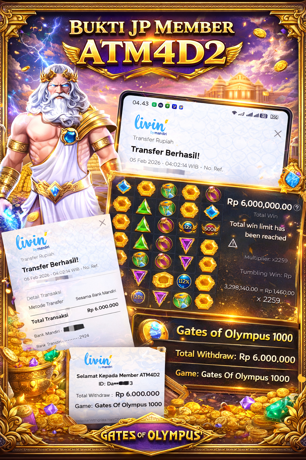 ATM4D2 dikenal sebagai situs terpercaya yang selalu menghadirkan pengalaman bermain slot online yang aman, fair, dan berlisensi resmi. Di sini, kami tidak hanya sekadar memberikan janji, tapi bukti nyata berupa slip kemenangan yang dapat Anda lihat secara langsung.