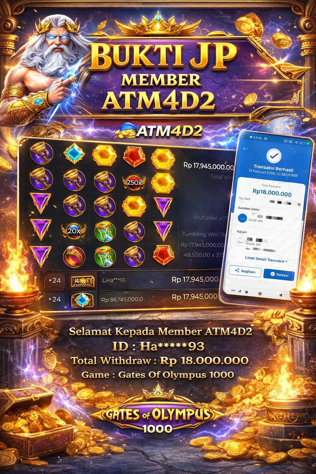 ATM4D2 dikenal sebagai situs terpercaya yang selalu menghadirkan pengalaman bermain slot online yang aman, fair, dan berlisensi resmi. Di sini, kami tidak hanya sekadar memberikan janji, tapi bukti nyata berupa slip kemenangan yang dapat Anda lihat secara langsung.