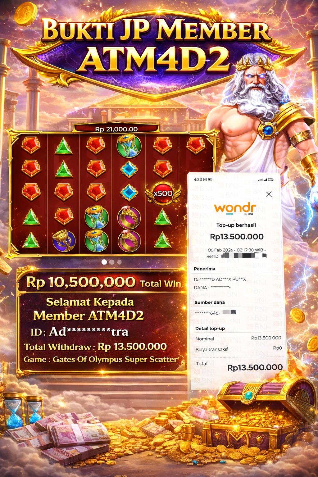 ATM4D2 dikenal sebagai situs terpercaya yang selalu menghadirkan pengalaman bermain slot online yang aman, fair, dan berlisensi resmi. Di sini, kami tidak hanya sekadar memberikan janji, tapi bukti nyata berupa slip kemenangan yang dapat Anda lihat secara langsung.