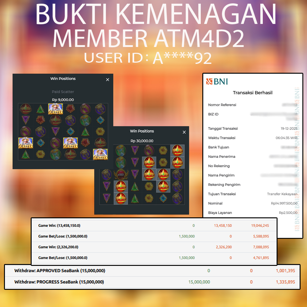 ATM4D2 dikenal sebagai situs terpercaya yang selalu menghadirkan pengalaman bermain slot online yang aman, fair, dan berlisensi resmi. Di sini, kami tidak hanya sekadar memberikan janji, tapi bukti nyata berupa slip kemenangan yang dapat Anda lihat secara langsung.