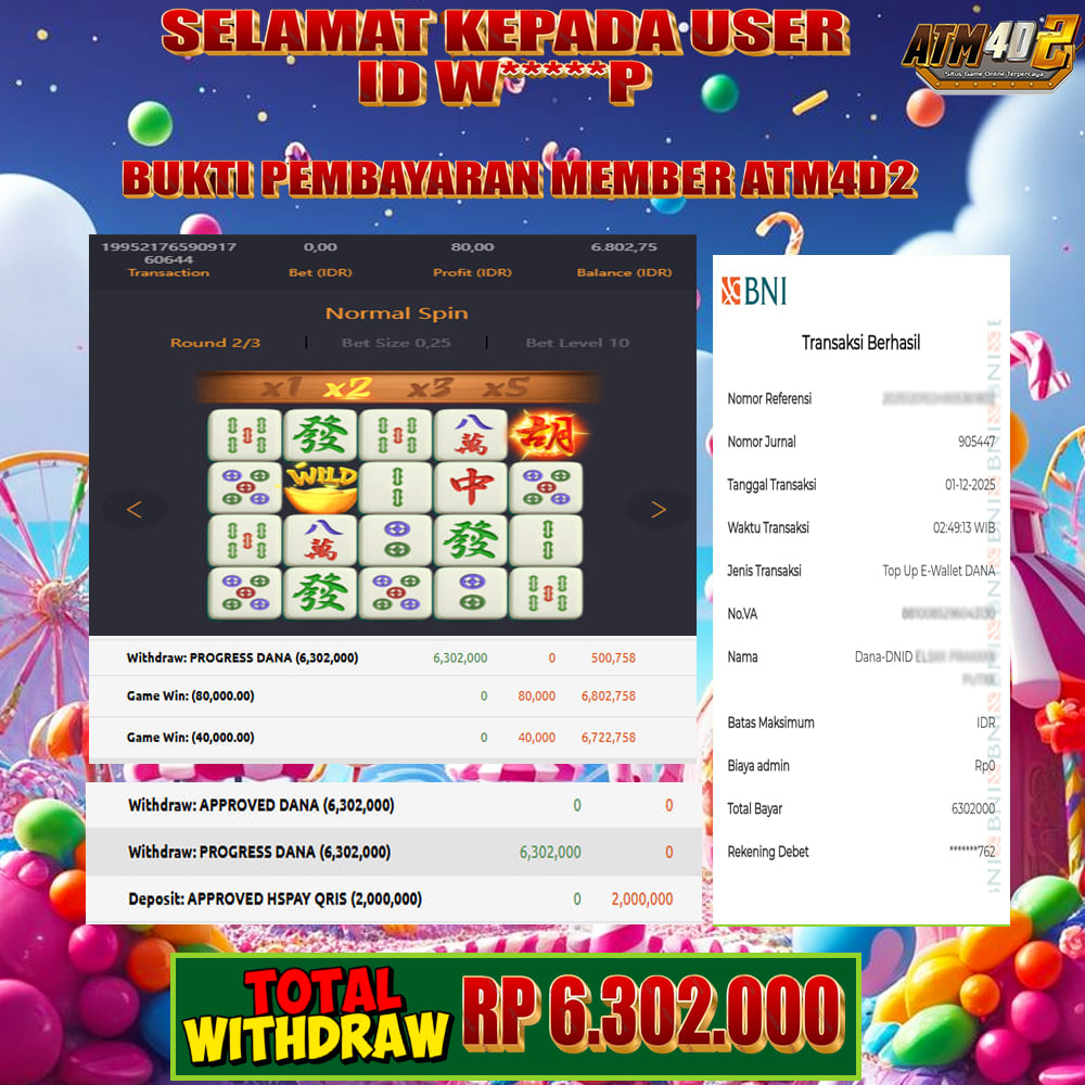 ATM4D2 dikenal sebagai situs terpercaya yang selalu menghadirkan pengalaman bermain slot online yang aman, fair, dan berlisensi resmi. Di sini, kami tidak hanya sekadar memberikan janji, tapi bukti nyata berupa slip kemenangan yang dapat Anda lihat secara langsung.