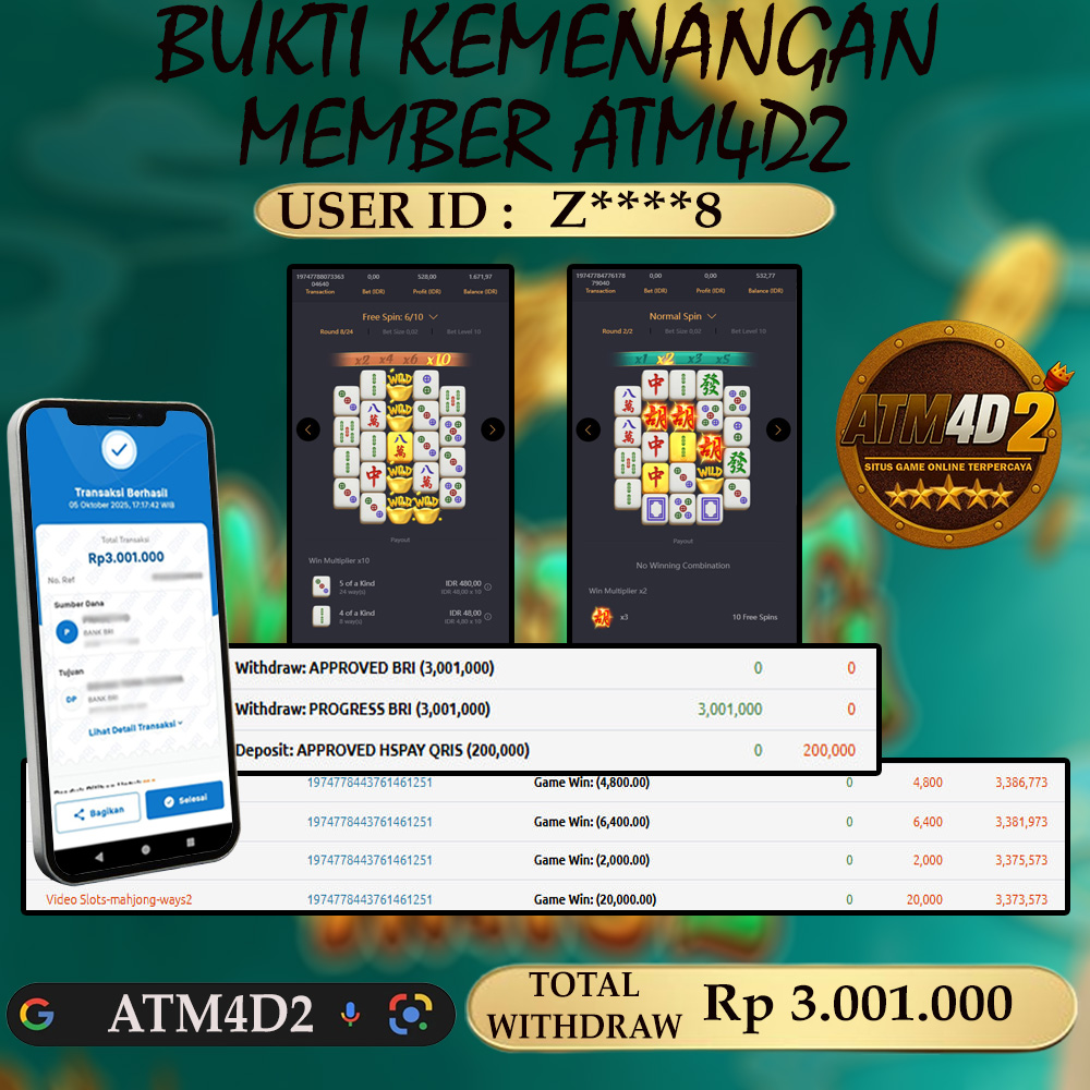ATM4D2 dikenal sebagai situs terpercaya yang selalu menghadirkan pengalaman bermain slot online yang aman, fair, dan berlisensi resmi. Di sini, kami tidak hanya sekadar memberikan janji, tapi bukti nyata berupa slip kemenangan yang dapat Anda lihat secara langsung.