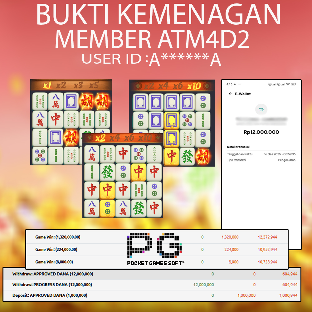 Setiap hari, member ATM4D2 berhasil meraih jackpot besar dari berbagai provider slot ternama yang kami sediakan, seperti Pragmatic Play, Habanero, PG Soft, dan masih banyak lagi. Kami secara rutin menampilkan bukti screenshot atau rekapan kemenangan yang berhasil diraih, mulai dari kemenangan ratusan ribu hingga puluhan juta rupiah. Semua slip kemenangan ini kami hadirkan untuk membuktikan bahwa di ATM4D2, peluang menang itu nyata.