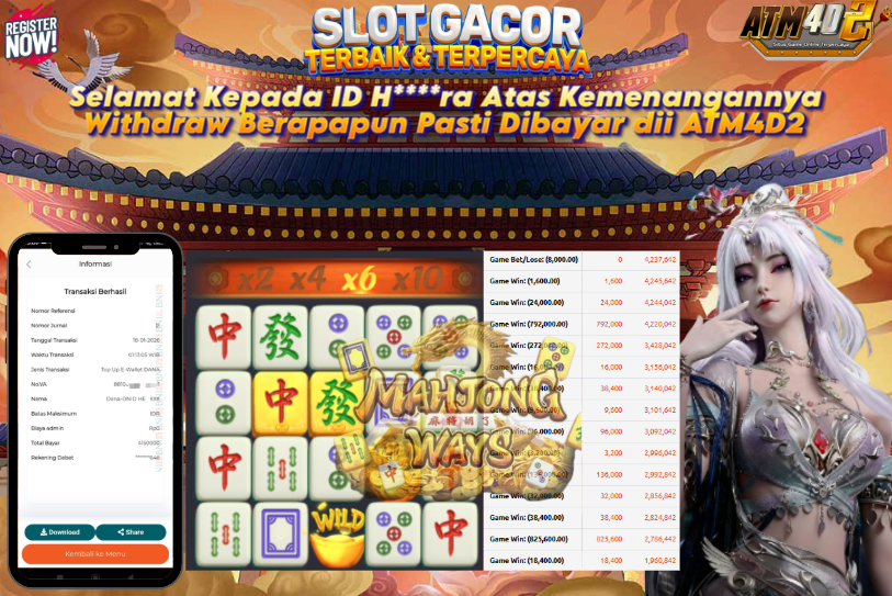 ATM4D2 dikenal sebagai situs terpercaya yang selalu menghadirkan pengalaman bermain slot online yang aman, fair, dan berlisensi resmi. Di sini, kami tidak hanya sekadar memberikan janji, tapi bukti nyata berupa slip kemenangan yang dapat Anda lihat secara langsung.