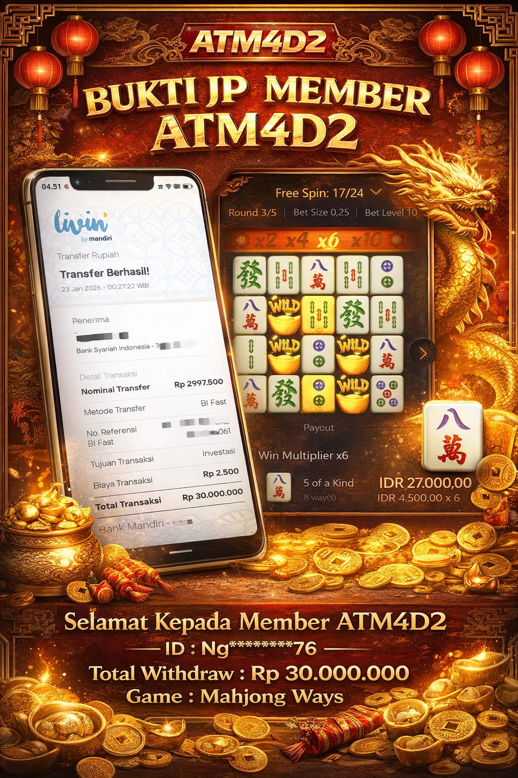 ATM4D2 dikenal sebagai situs terpercaya yang selalu menghadirkan pengalaman bermain slot online yang aman, fair, dan berlisensi resmi. Di sini, kami tidak hanya sekadar memberikan janji, tapi bukti nyata berupa slip kemenangan yang dapat Anda lihat secara langsung.