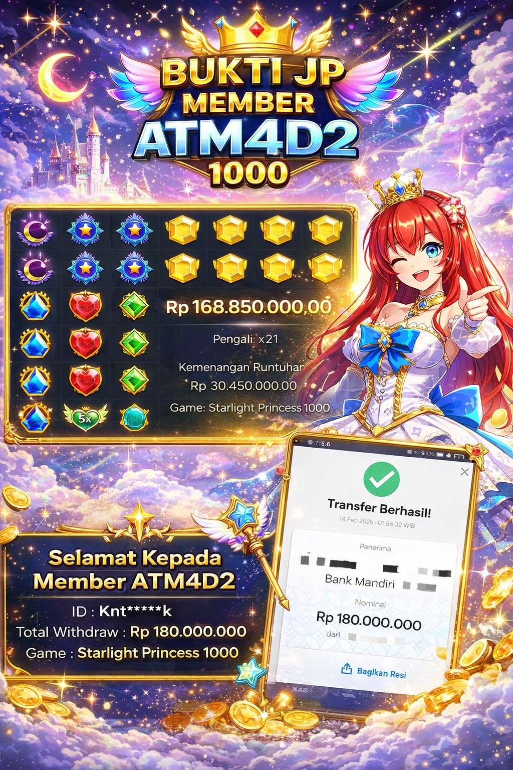 JACKPOT SLOT STARLIGHT PRINCESS 1000 14 FEBRUARI 2026