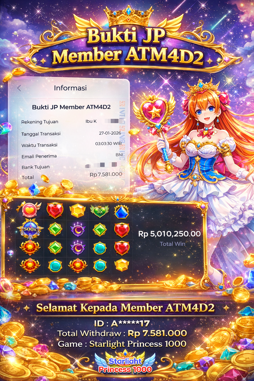 JACKPOT SLOT STARLIGHT PRINCESS 1000 27 JANUARI 2026
