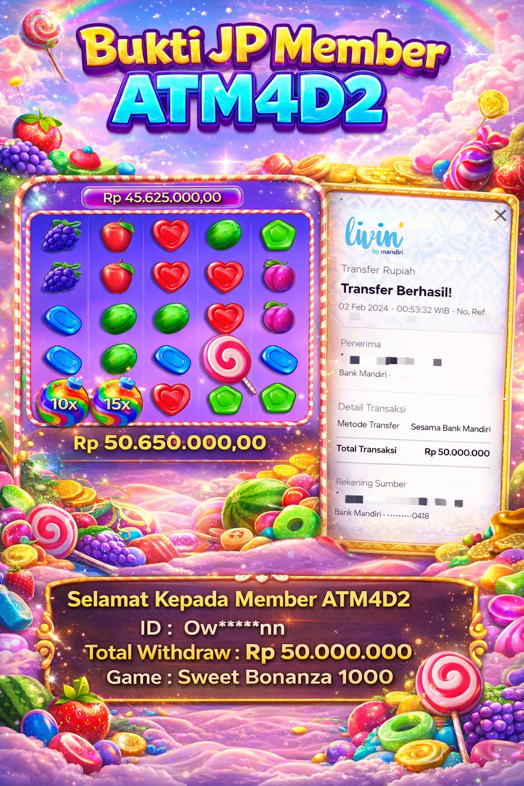 ATM4D2 dikenal sebagai situs terpercaya yang selalu menghadirkan pengalaman bermain slot online yang aman, fair, dan berlisensi resmi. Di sini, kami tidak hanya sekadar memberikan janji, tapi bukti nyata berupa slip kemenangan yang dapat Anda lihat secara langsung.