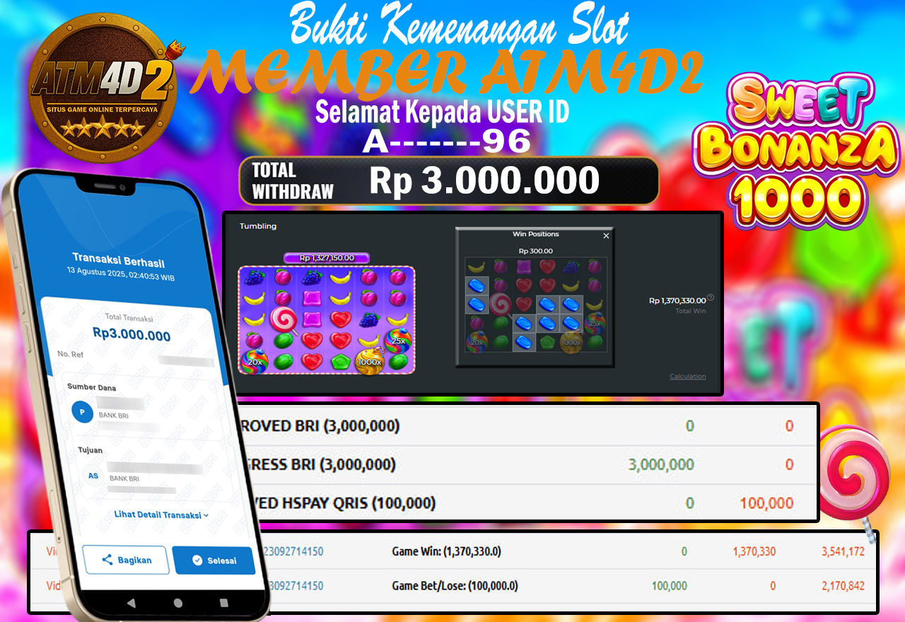 ATM4D2 dikenal sebagai situs terpercaya yang selalu menghadirkan pengalaman bermain slot online yang aman, fair, dan berlisensi resmi. Di sini, kami tidak hanya sekadar memberikan janji, tapi bukti nyata berupa slip kemenangan yang dapat Anda lihat secara langsung.