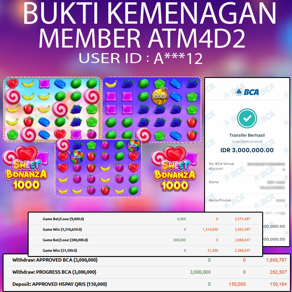 ATM4D2 dikenal sebagai situs terpercaya yang selalu menghadirkan pengalaman bermain slot online yang aman, fair, dan berlisensi resmi. Di sini, kami tidak hanya sekadar memberikan janji, tapi bukti nyata berupa slip kemenangan yang dapat Anda lihat secara langsung.