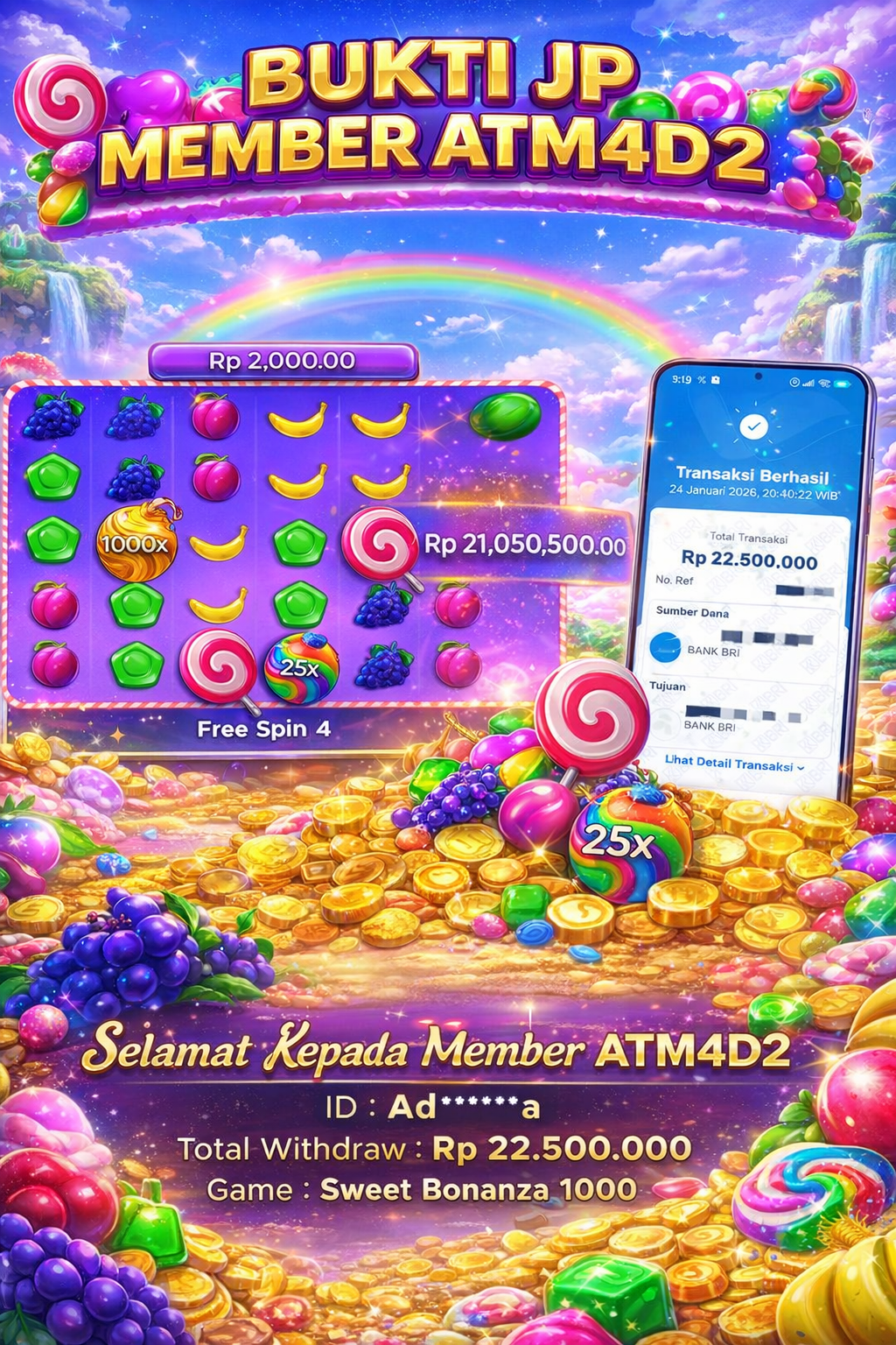 Satu lagi Bukti JP dan Pembarayan Sah Dan Dapat Dipertanggung Jawabkan, WD Berapapun Pasti Dibayar Lunas Hanya di Situs ATM4D2. Hati Hati Kepada Pihak Pihak Yang Mengatas namakan Pihak ATM4D2 Untuk Melakukan Penipuan.