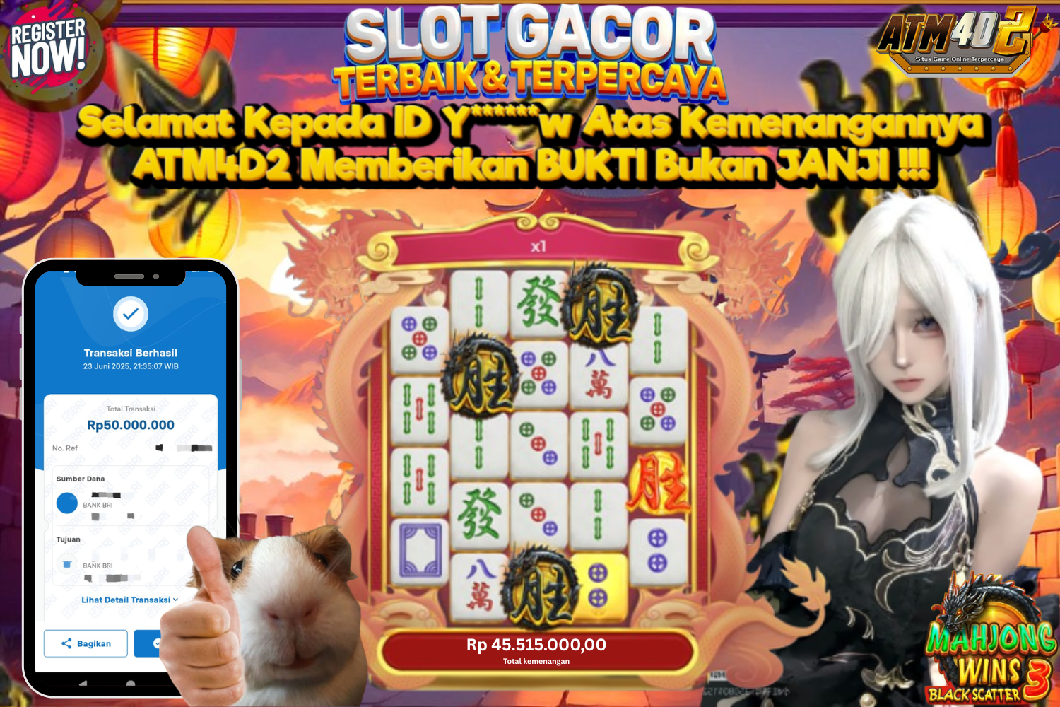 ATM4D2 dikenal sebagai situs terpercaya yang selalu menghadirkan pengalaman bermain slot online yang aman, fair, dan berlisensi resmi. Di sini, kami tidak hanya sekadar memberikan janji, tapi bukti nyata berupa slip kemenangan yang dapat Anda lihat secara langsung.
