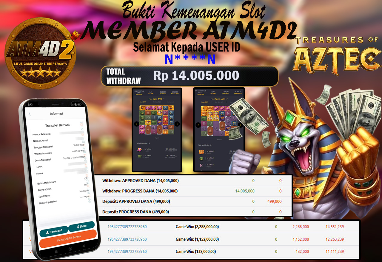 ATM4D2 dikenal sebagai situs terpercaya yang selalu menghadirkan pengalaman bermain slot online yang aman, fair, dan berlisensi resmi. Di sini, kami tidak hanya sekadar memberikan janji, tapi bukti nyata berupa slip kemenangan yang dapat Anda lihat secara langsung.