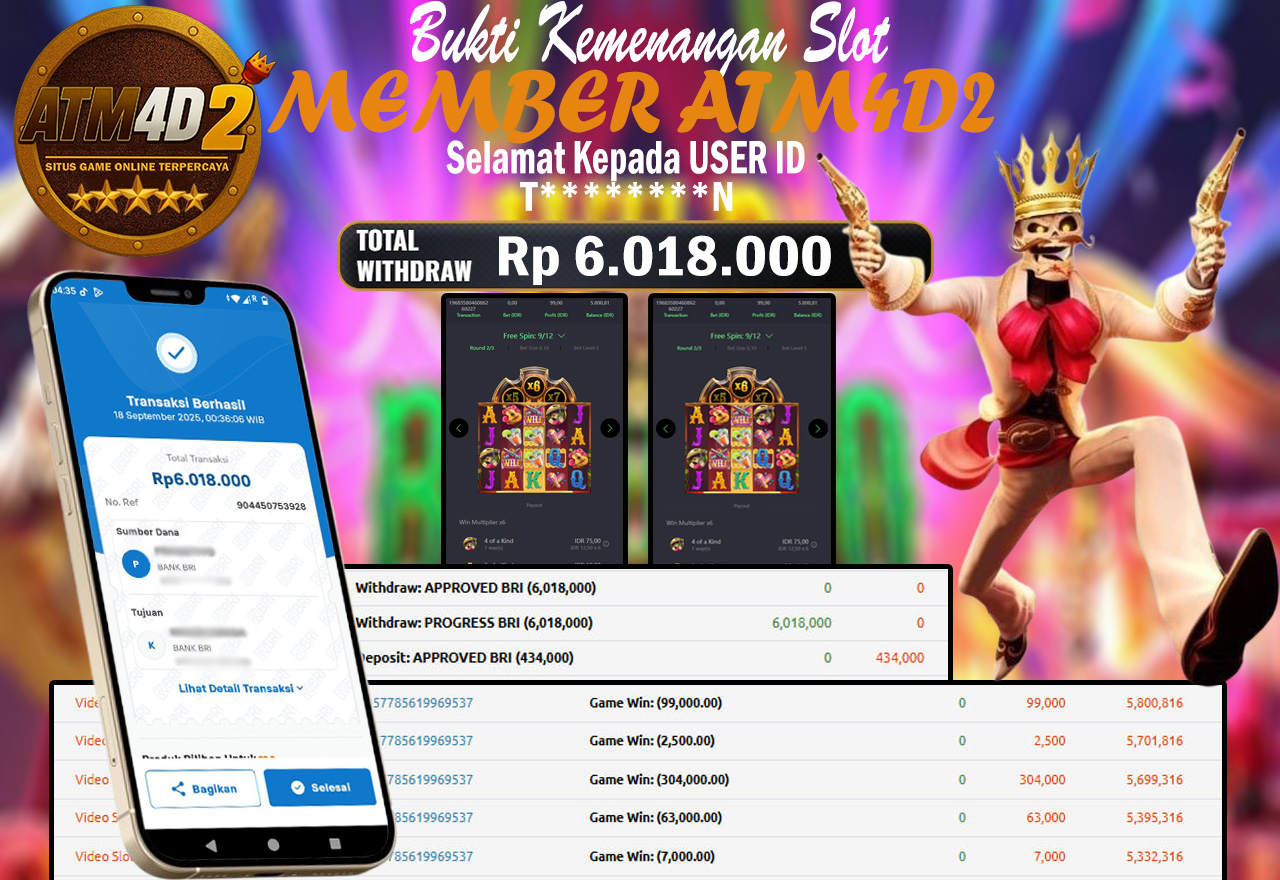 ATM4D2 dikenal sebagai situs terpercaya yang selalu menghadirkan pengalaman bermain slot online yang aman, fair, dan berlisensi resmi. Di sini, kami tidak hanya sekadar memberikan janji, tapi bukti nyata berupa slip kemenangan yang dapat Anda lihat secara langsung.
