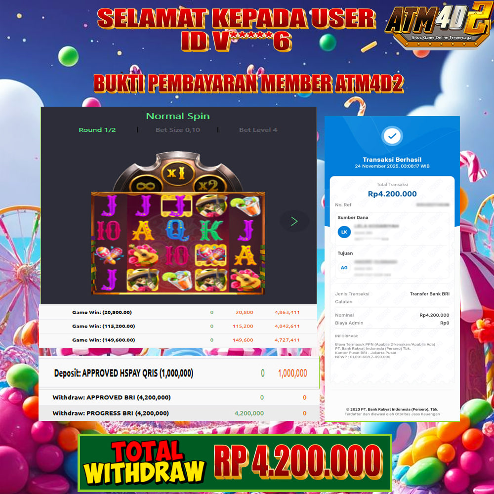 ATM4D2 dikenal sebagai situs terpercaya yang selalu menghadirkan pengalaman bermain slot online yang aman, fair, dan berlisensi resmi. Di sini, kami tidak hanya sekadar memberikan janji, tapi bukti nyata berupa slip kemenangan yang dapat Anda lihat secara langsung.