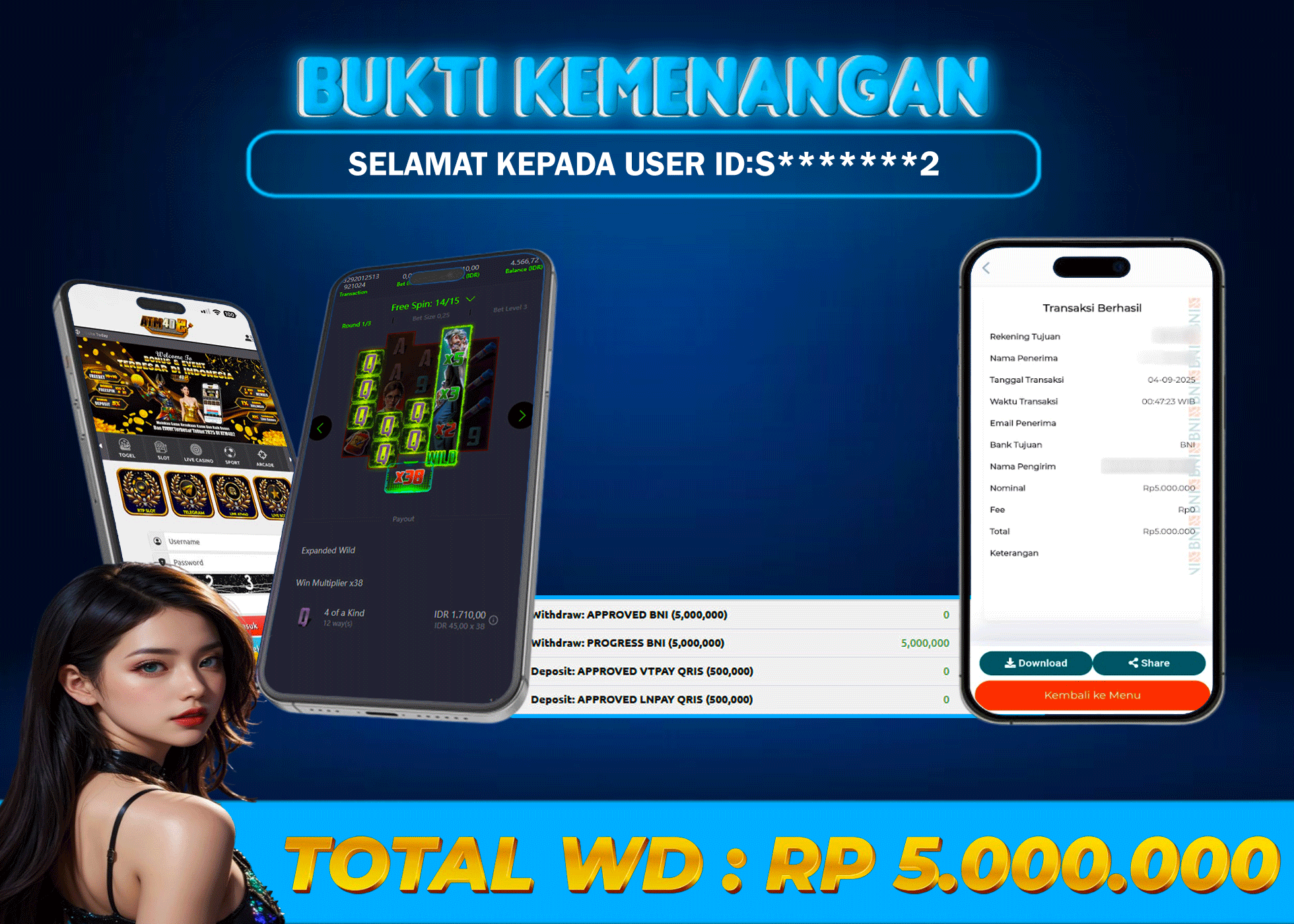 ATM4D2 dikenal sebagai situs terpercaya yang selalu menghadirkan pengalaman bermain slot online yang aman, fair, dan berlisensi resmi. Di sini, kami tidak hanya sekadar memberikan janji, tapi bukti nyata berupa slip kemenangan yang dapat Anda lihat secara langsung.