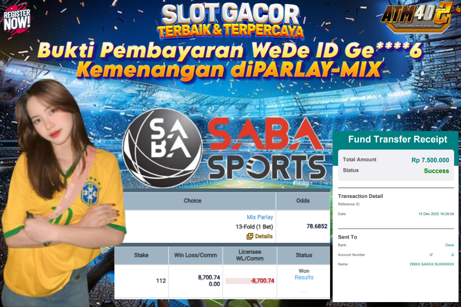 ATM4D2 dikenal sebagai situs terpercaya yang selalu menghadirkan pengalaman bermain slot online yang aman, fair, dan berlisensi resmi. Di sini, kami tidak hanya sekadar memberikan janji, tapi bukti nyata berupa slip kemenangan yang dapat Anda lihat secara langsung.